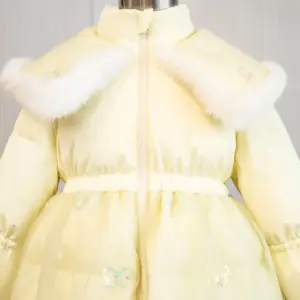 Girls down Coat Zipper Lapel Collar Yellow Puffer Jacket 1-6 Y