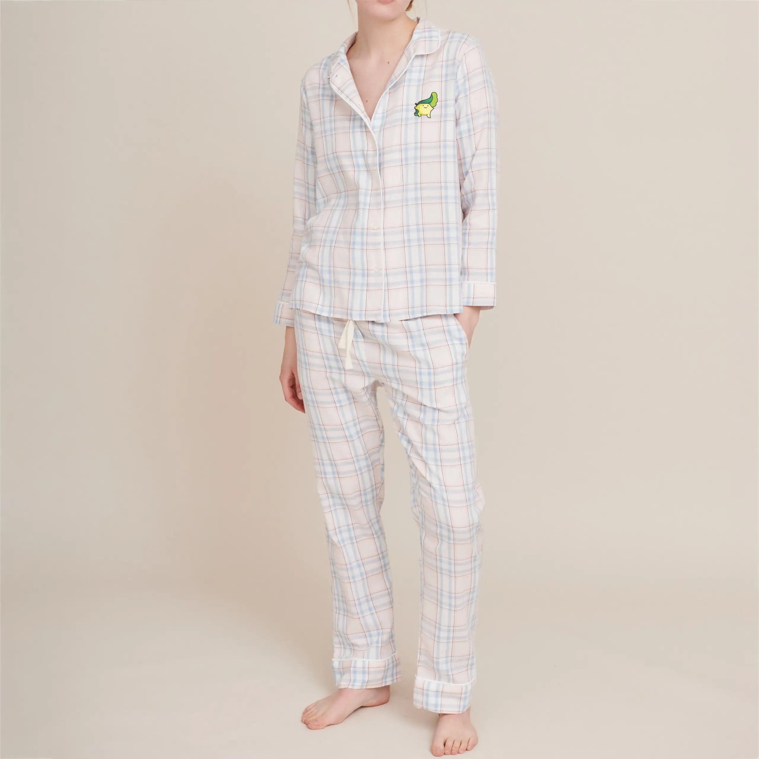 100% organic cotton plaid sleepwear for women