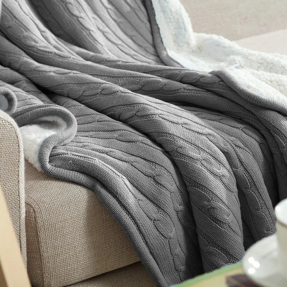 Material: The blanket is made of high-quality cotton materials, And Can be custom blend of fibers such as linen, wool, or cashmere. The outer layer features intricate cable knit patterns, while the inner layer is made of soft and cozy sherpa fabric. This combination of materials provides an elegant appearance and a warm, comfortable touch.