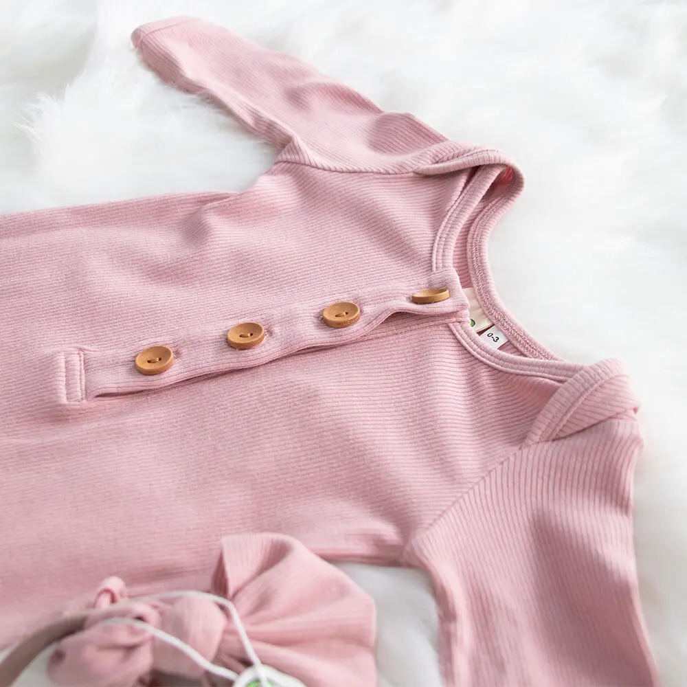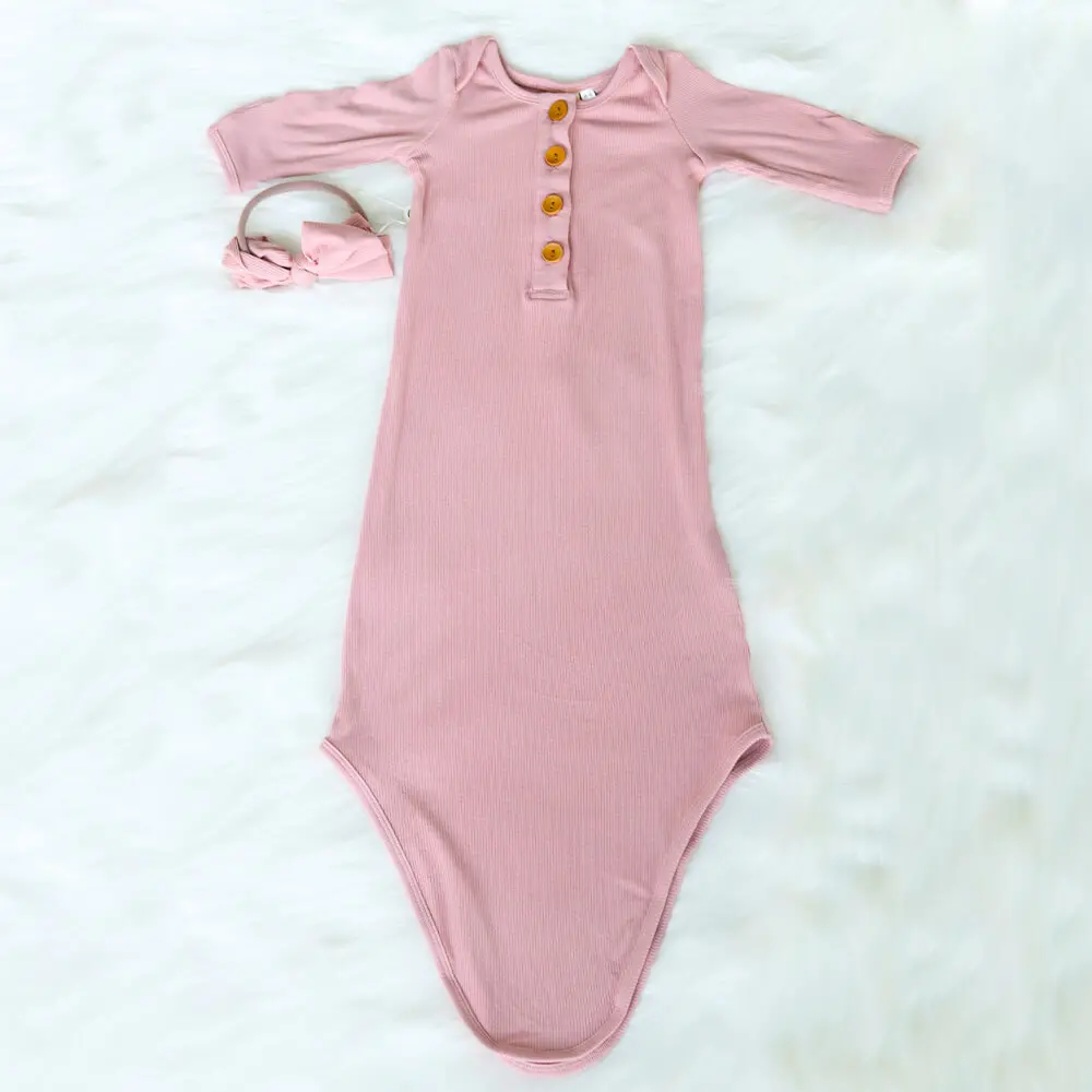 Newborn Baby Sleeper Gown Knotted Gown Baby Girl Pajamas with headband