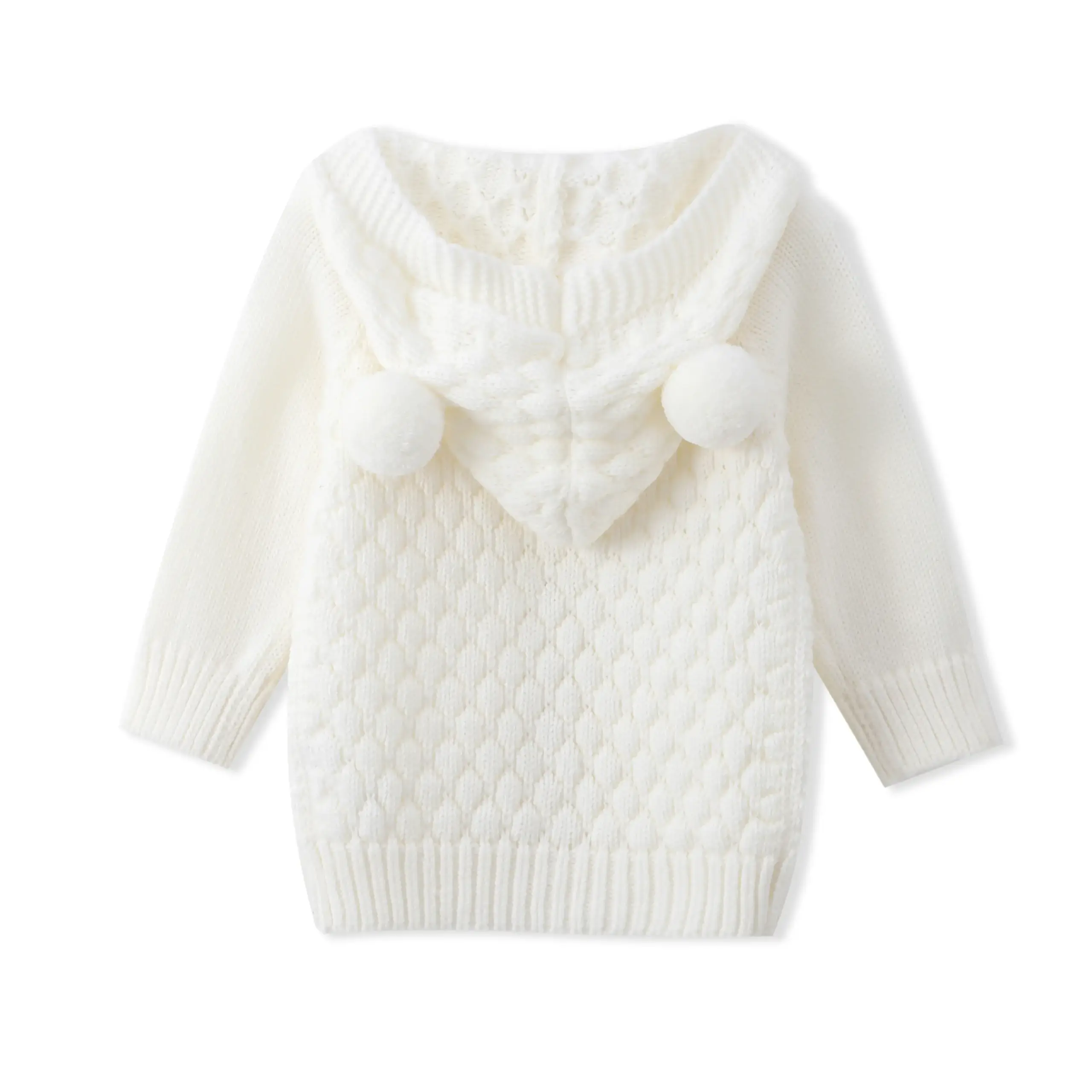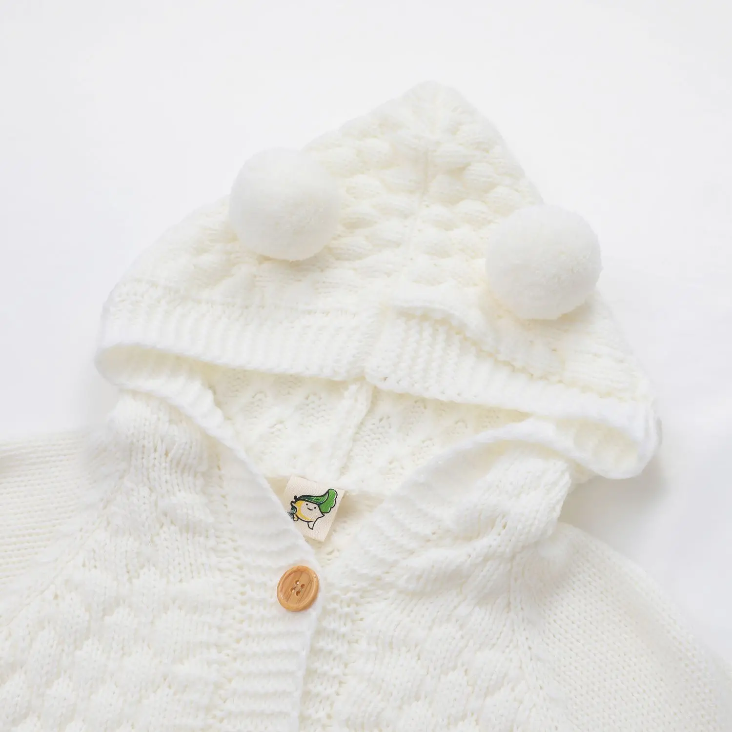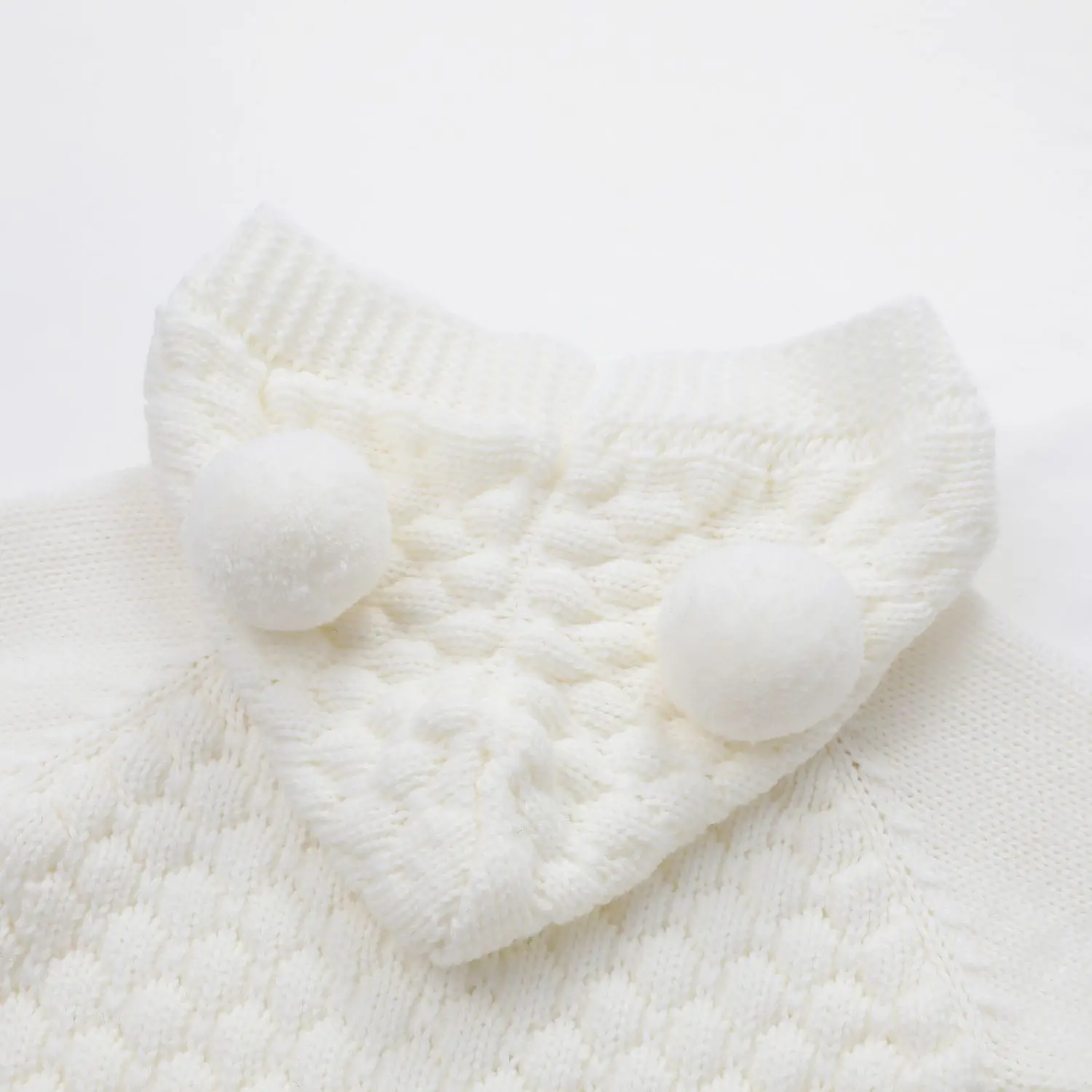 3.DESIGN:cute hooded cardigan, long sleeve knitted sweater, the hood adorned with 2 pom-pom, makes the romper more adorable and attractive.    Diamond small lattice highlight the fashion and lovely, flat knit on sleeves.    Front button up closure is easy for dressing or taking off