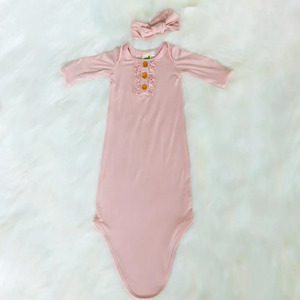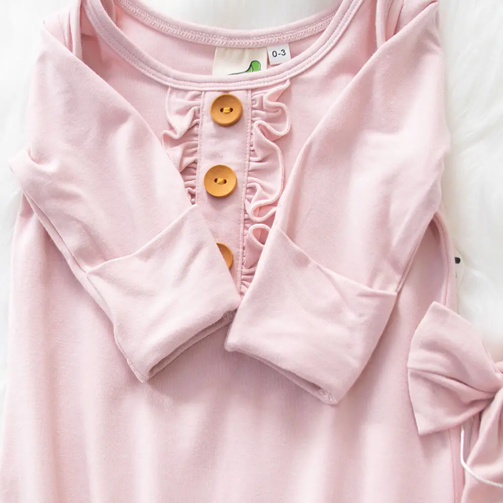 Pink Gown Knotted Newborn with Headband baby girl
